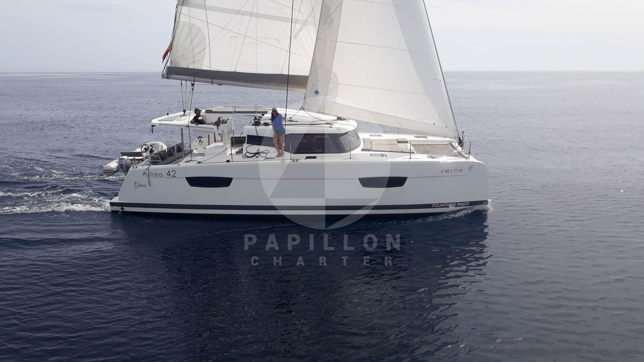 Este catamaran Fountaine Pajot 42 Astrea, fabricado en 2019, es un Lujoso catamarán de crucero. Con sus 13 metros de eslora y 7,20 metros de manga cumple a la perfección todas las exigencias para pasar unas vacaciones de inolvidables.