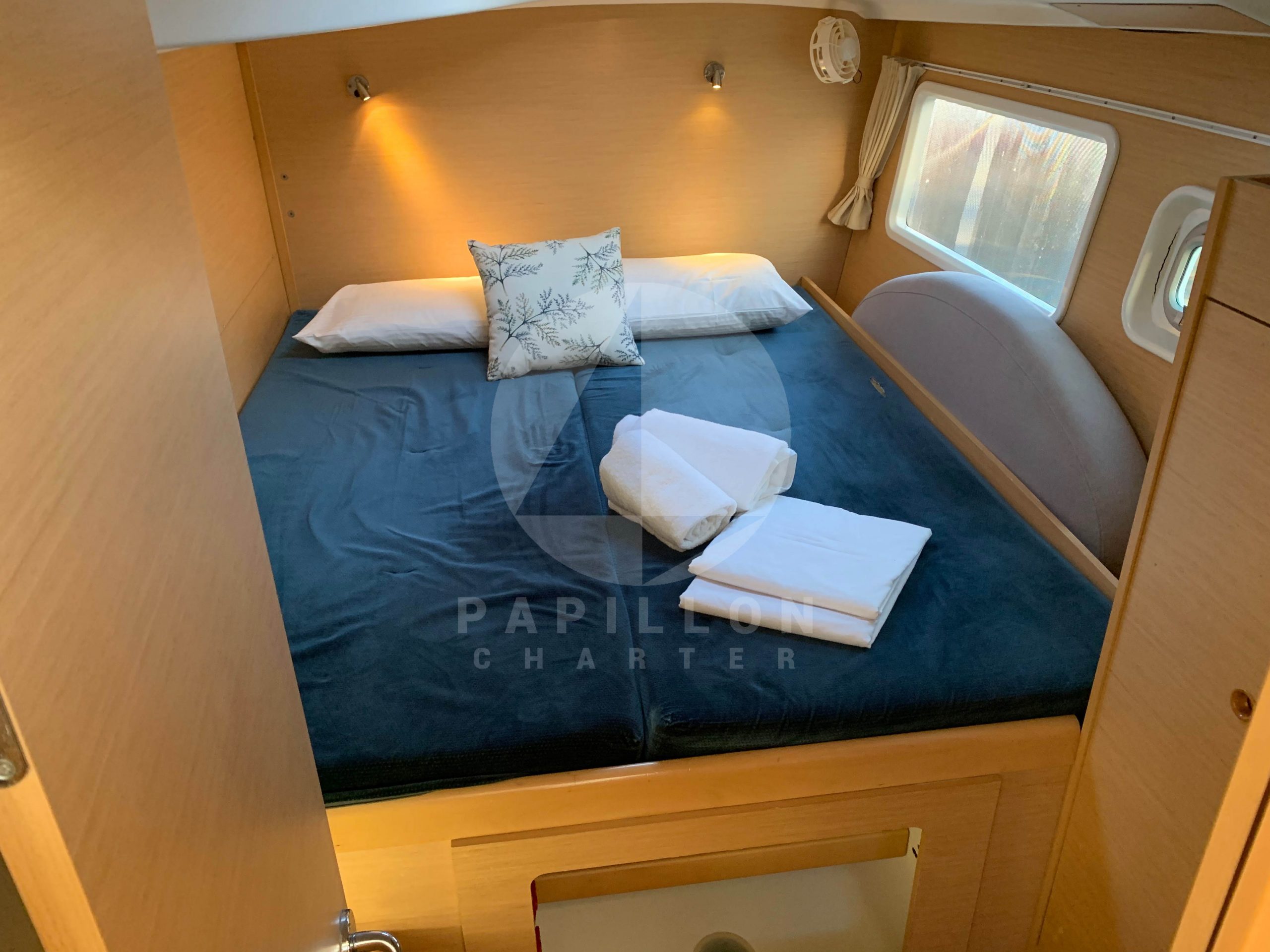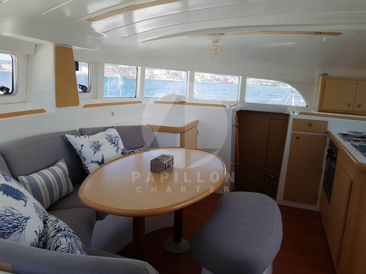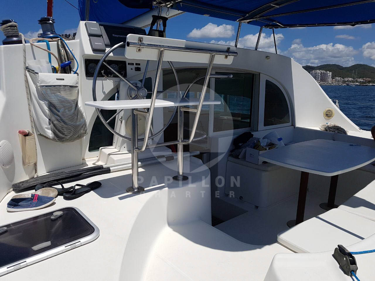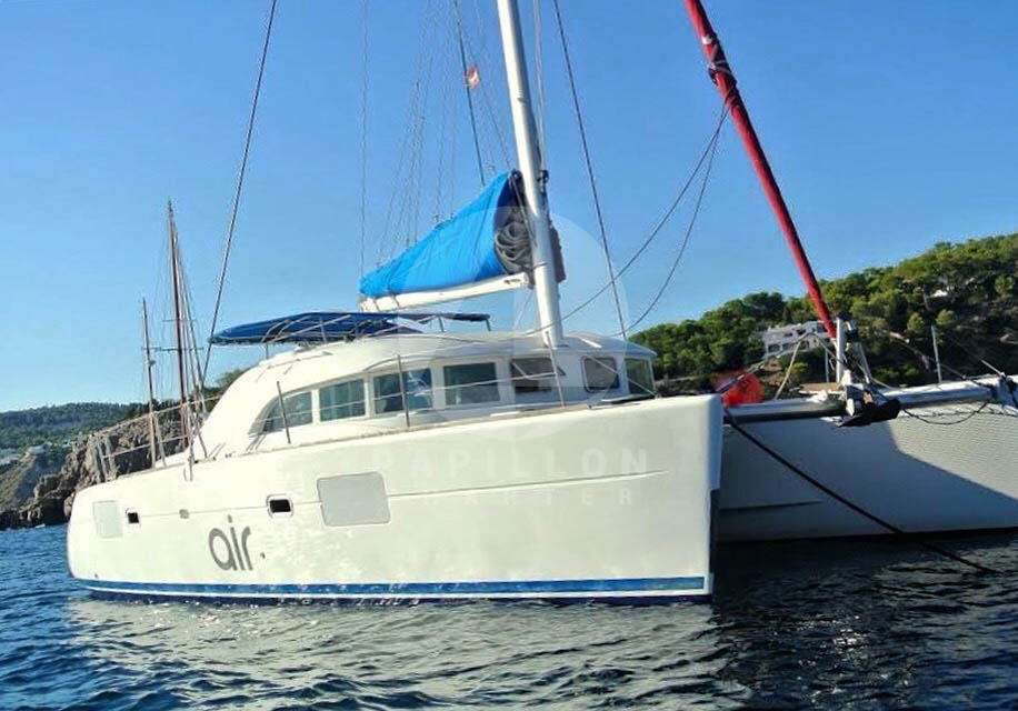El catamarán Lagoon 400 S2 “Esmeralda” fabricado en 2017, con sus 12 metros de eslora y 7,25 metros de manga, cumple a la perfección todas las exigencias para pasar unas vacaciones de inolvidables. Acoge confortablemente a 8 personas en sus 4 camarotes dobles con baño individual más 2 personas en su salón convertible.