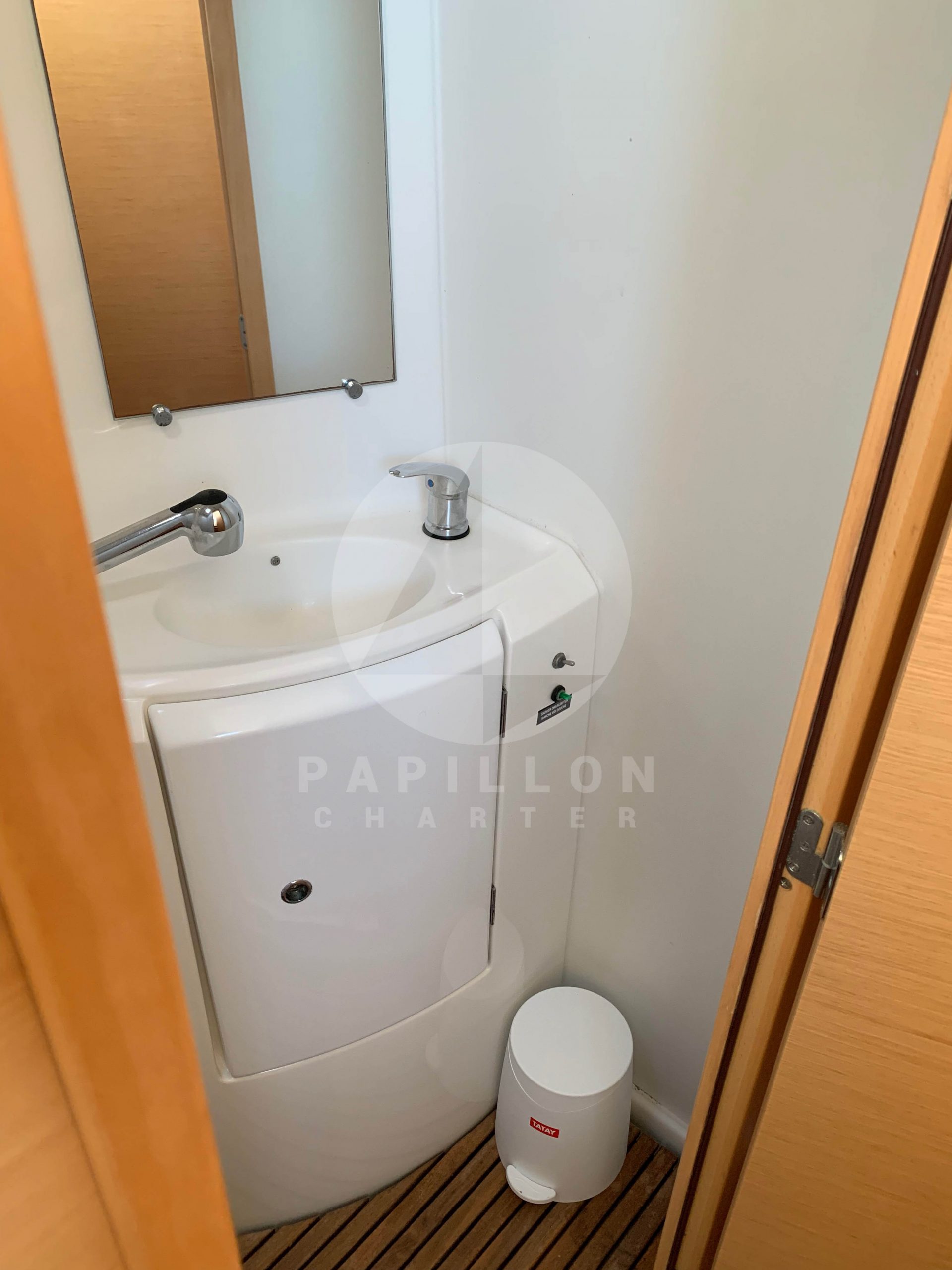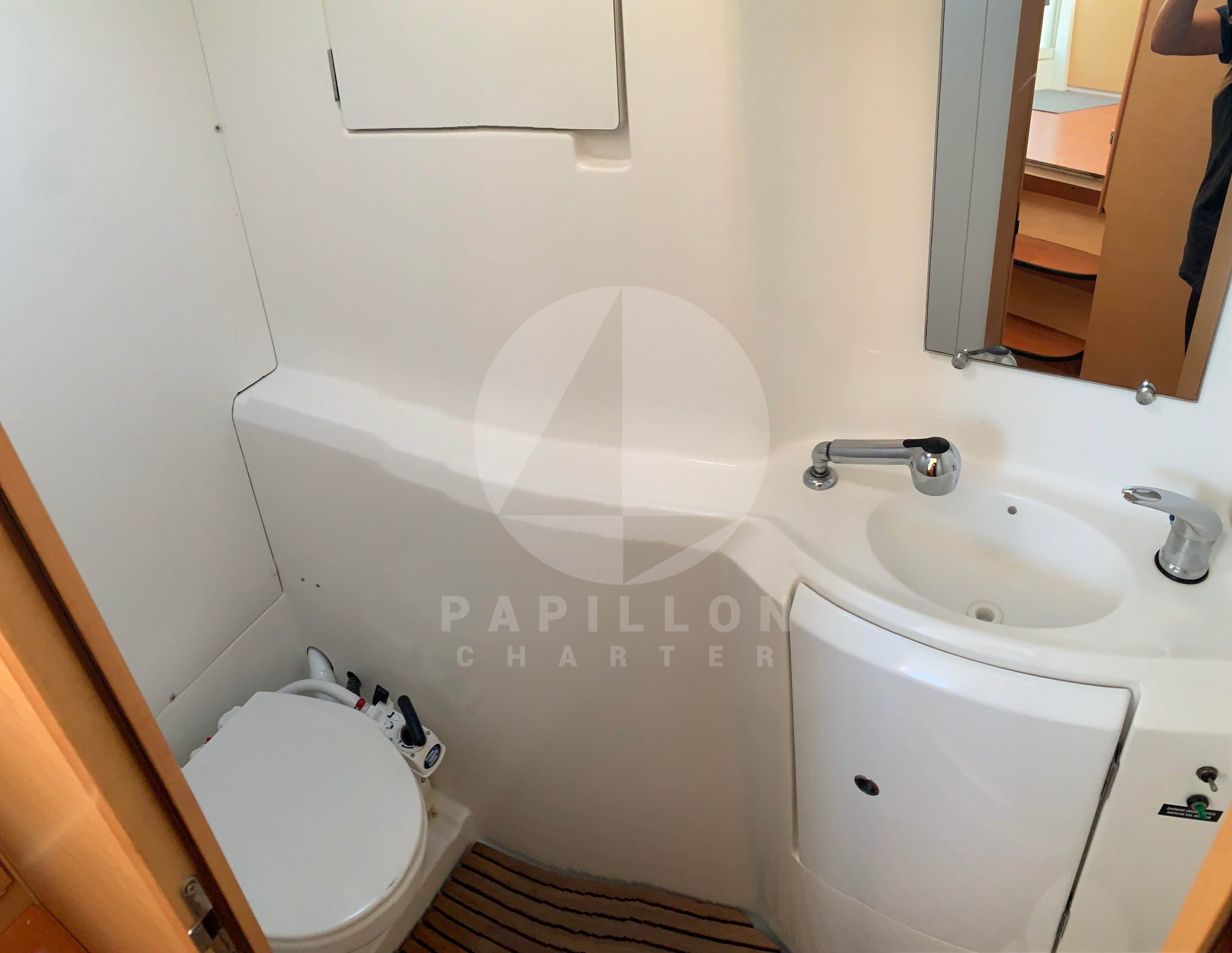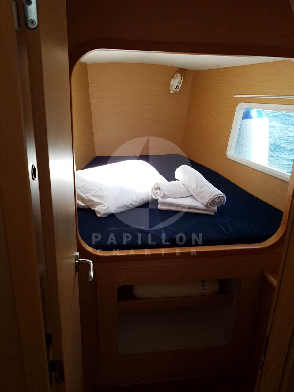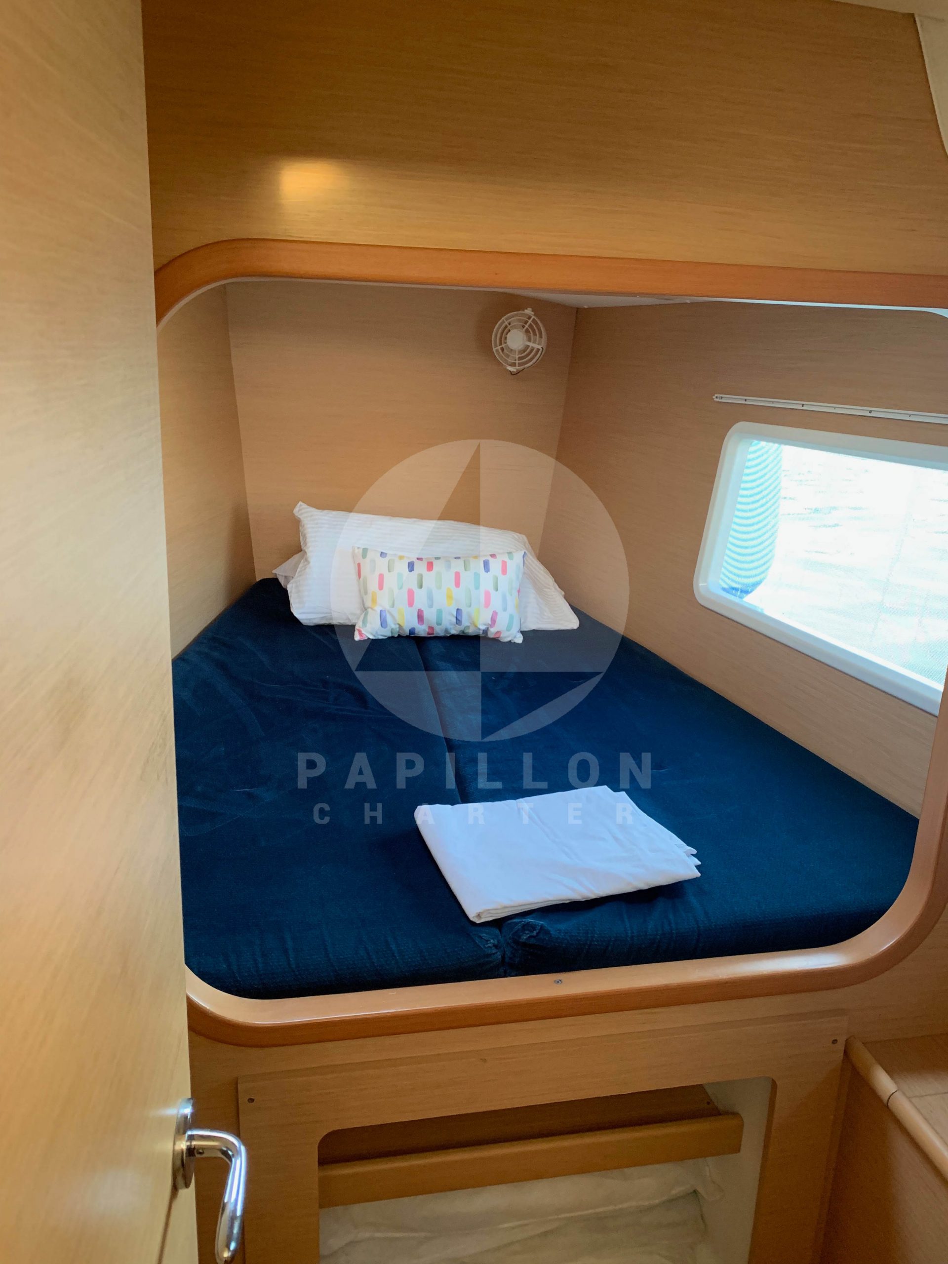 El catamarán Lagoon 400 S2 “Esmeralda” fabricado en 2017, con sus 12 metros de eslora y 7,25 metros de manga, cumple a la perfección todas las exigencias para pasar unas vacaciones de inolvidables. Acoge confortablemente a 8 personas en sus 4 camarotes dobles con baño individual más 2 personas en su salón convertible.