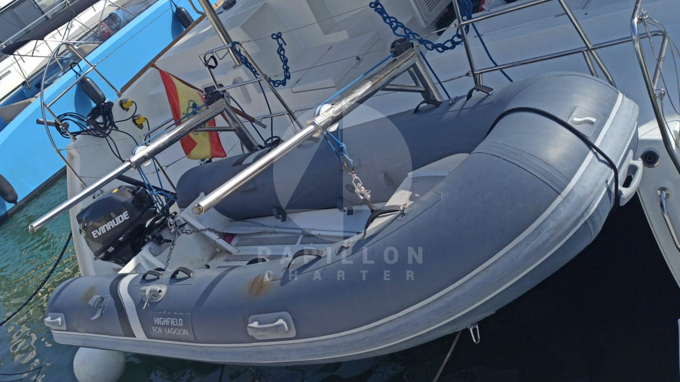 - Pack confort obligatorio y otros extras:Pack confort 450 euros. Incuye: Sábanas, toallas, embarcación auxiliar con motor fueraborda y limpieza final.